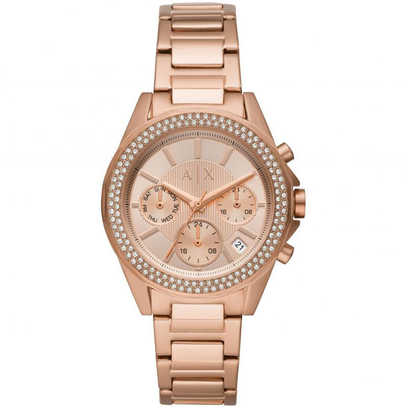 ARMANI EXCHANGE verwendet für dieses Modell Edelstahl mit roségoldfarbiger Beschichtung, kratzfestes Mineralglas und Kristalle in der Lünette. Das Quarzwerk bietet zuverlässige Präzision bei minimalem Wartungsaufwand.