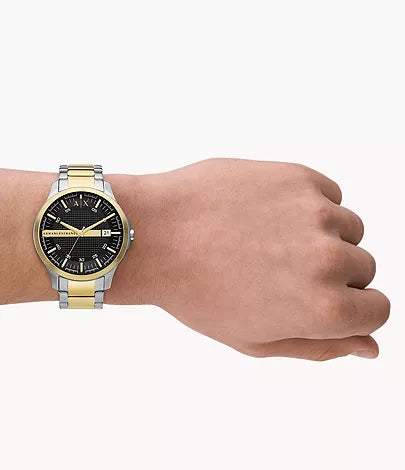 Einführung: Die ARMANI EXCHANGE Mod. HAMPTON AX2453 verbindet meisterhaft urbanes Design und höchste Handwerkskunst. Die harmonische Kombination aus Silber und Gold, das schwarze Zifferblatt sowie die klare Linienführung machen diese Uhr zum Ausdruck von persönlichem Stil und moderner Eleganz. Jedes Detail – vom Gehäuse bis zum Verschluss – zeugt von einem Anspruch an Qualität und Ausdruck.