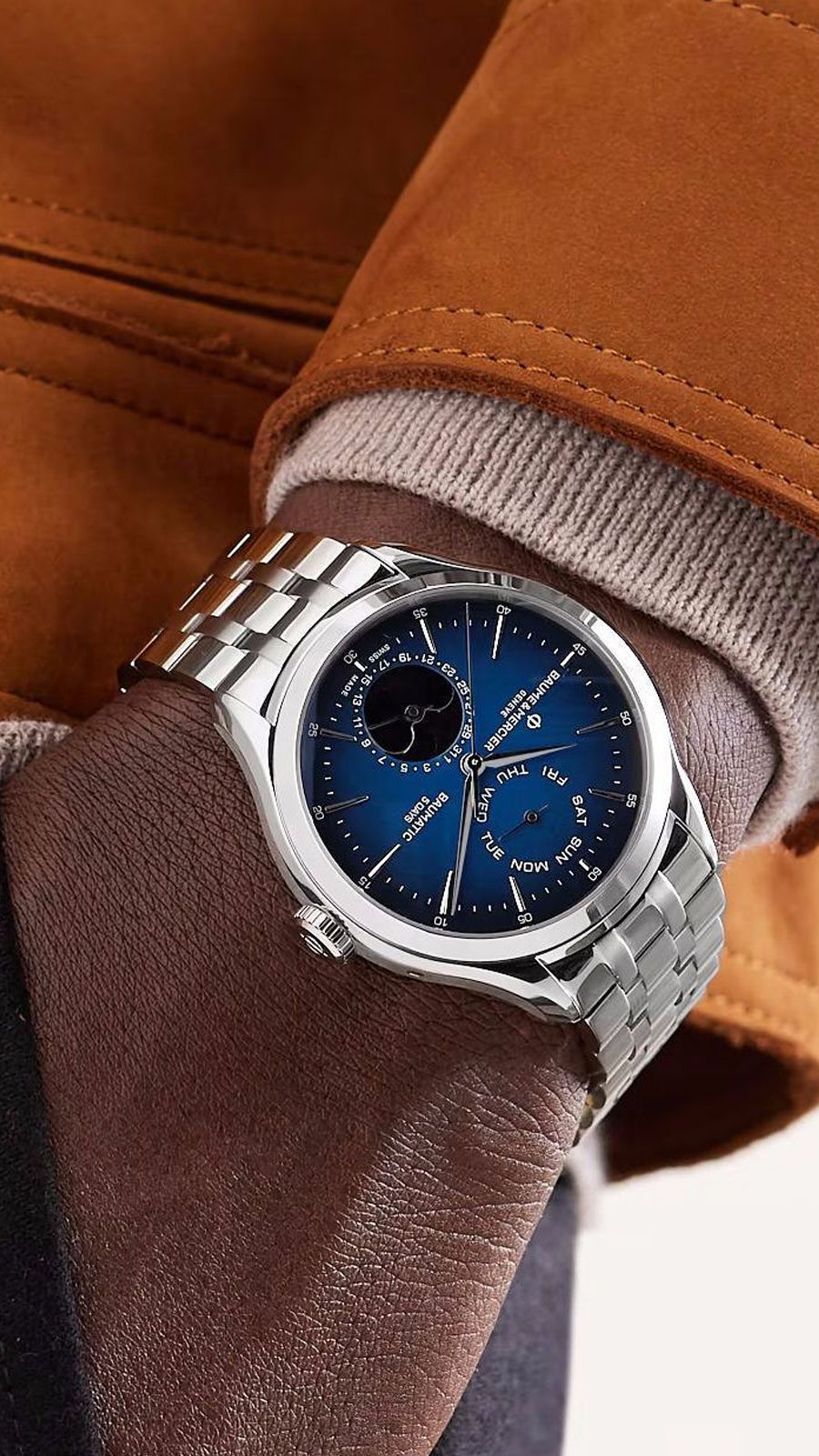 - Anspruchsvolles Design: Blau lackiertes Zifferblatt mit Mondphase und Tag/Datum für ausgewogene Eleganz.