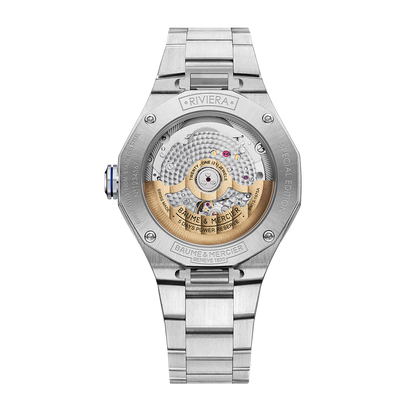 Seit 1830 steht Baume & Mercier für eine Leidenschaft, die Uhren zu Ausdruck von Persönlichkeit machen. Die Riviera MOA10826 verbindet sportiches Design mit traditioneller Uhrmacherkunst: Die Kombination aus dem ikonischen zwölfseitigen Gehäuse, dem wellenförmigen blauen Zifferblatt und fein veredelten Elementen ergibt eine Armbanduhr, die Ihren Stil spiegelt und jedem Moment Charakter verleiht.
