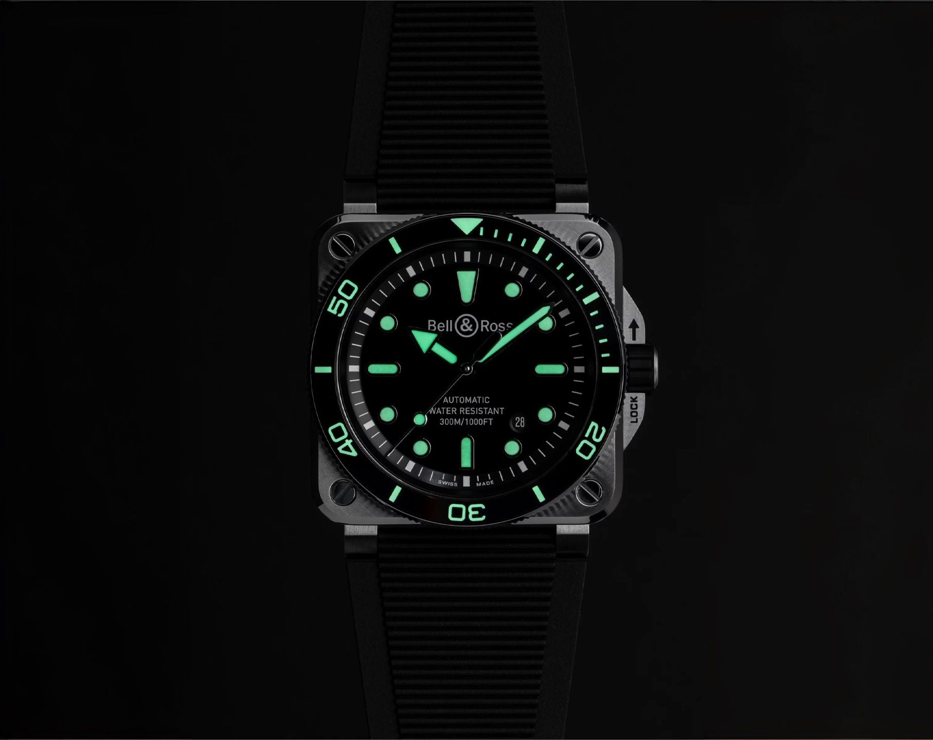 Gegenüber reinen BR-03 Varianten setzt dieses Modell auf erhöhte Wasserdichtigkeit (300 m), eine Keramik-Lünette und verbesserte Indizes und Zeiger, welche in der neuen Diver-Generation deutlich leuchtstärker sind.