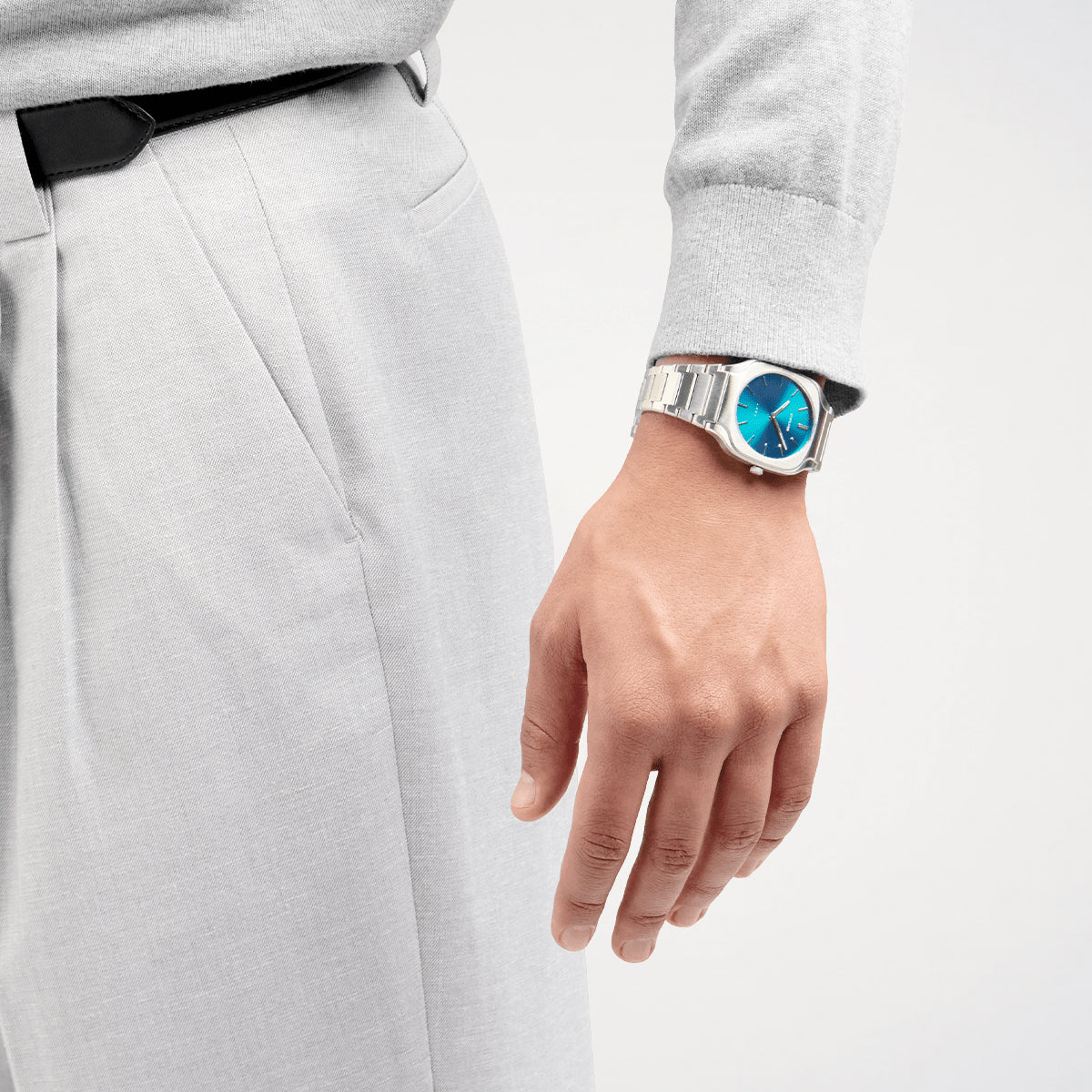 Absolut. Die Kombination aus Silber und Blau macht die Uhr vielseitig – ob Business Anzug, Casual Look oder in Kombination mit Leder-Accessoires.