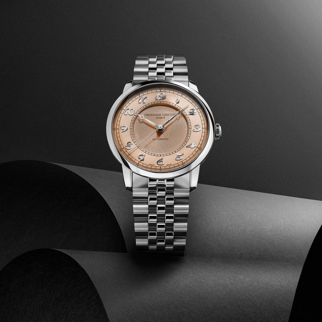 Mit der Classics Première FC-301SAL3B6B erleben Sie eine Uhr, die Stil, Handwerkskunst und Persönlichkeit auf harmonische Weise vereint. Jedes Detail – vom Lachs-Zifferblatt bis zum automatischen Werk – zeugt von einem Anspruch an Eleganz sowie einer Liebe zum nostalgischen Flair vergangener Jahrzehnte.