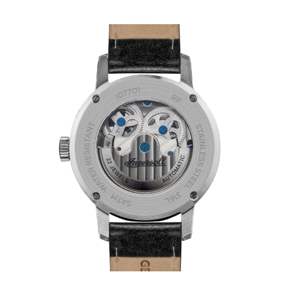 Stilvoller Ausdruck und meisterhafte Mechanik vereinen sich in dieser Automatikuhr: Die Ingersoll 1892 Mod. I07707 ist mehr als nur ein Zeitmesser – sie ist ein Statement von Klasse und Individualität. Das offen gestaltete Skelett-Zifferblatt unterstreicht, was hochwertige Uhrmacherkunst bedeutet. Blaues Zifferblatt, silberner Edelstahl und sichtbares Innenleben – hier zeigt das Detail, wieviel Leidenschaft hinter jedem Stück steckt.