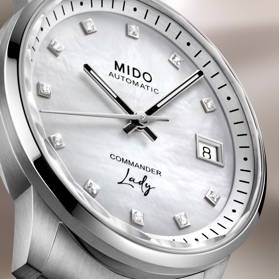 Diese luxuriöse Uhr verkörpert Stil, Ausdruck und meisterhafte Verarbeitung. Die Commander Lady von MIDO vereint filigrane Schönheit mit technischer Präzision – ein Schmuckstück, das nicht einfach nur die Zeit anzeigt, sondern Ihre Persönlichkeit unterstreicht und Ihren Auftritt unvergesslich macht.