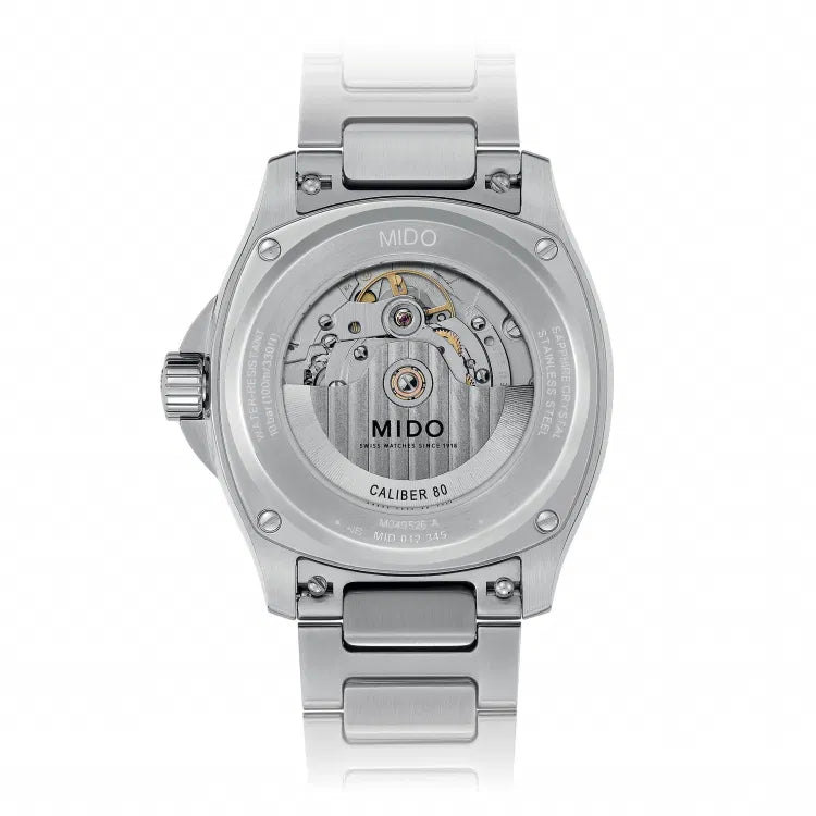 Die Uhr wird Swiss Made gefertigt saubere Gravuren, präzise Zeiger- und Indexausrichtung, markantes Gehäusefinish und ein durchscheinender oder geschlossener Boden, je nach Version, sind Zeichen echter Mido Präzision.