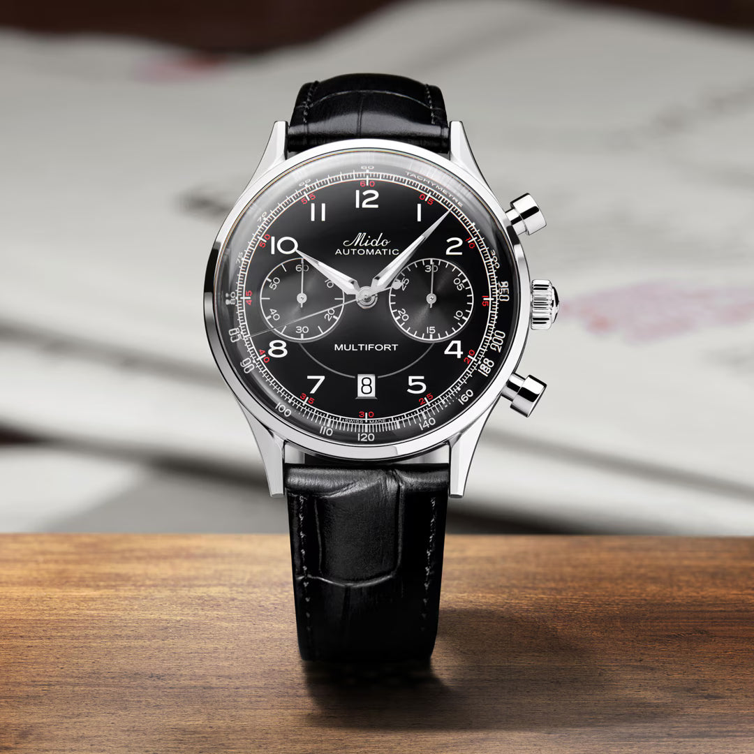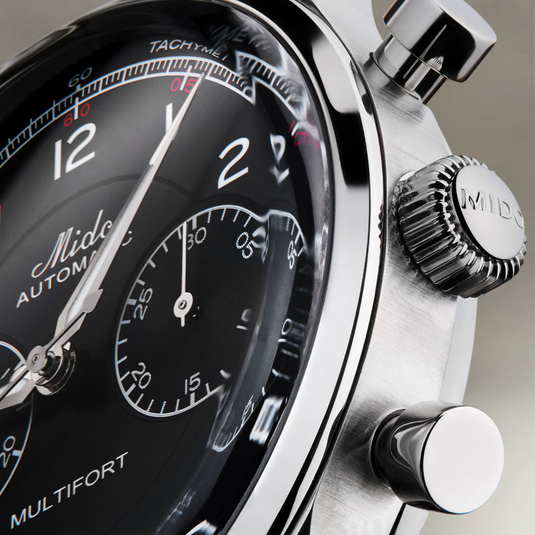 Mit der Multifort Patrimony Chronograph schreibt Mido nicht nur Zeit, sondern Geschichten Geschichte eines stolzen Erbes, feiner Uhrmacherkunst und eines Stils, der so modern wie nostalgisch zugleich ist. Jede Linie, jede Krümmung und jede Details zeigt, dass hier Tradition nicht verwahrt, sondern gelebt wird – speziell dann, wenn Sie sie tragen.