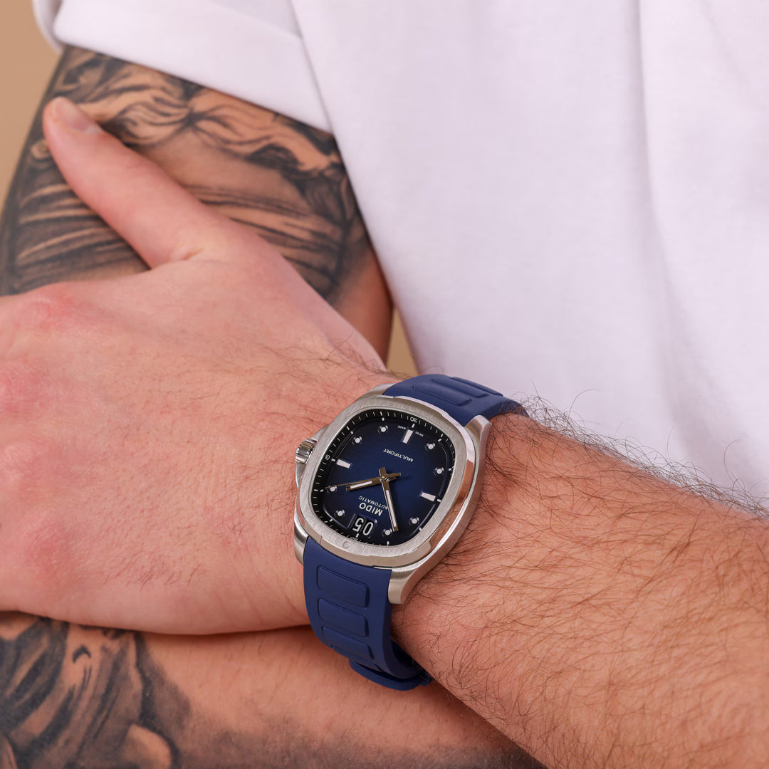 Ob im Berufsalltag, beim entspannten Wochenende oder bei festlichen Anlässen – die Multifort TV Big Date macht stets eine gute Figur. Die Retro-Anmutung verleiht Eleganz, während die alltagstaugliche Ausstattung mit starkem Automatikkaliber und hoher Wasserdichte für Zuverlässigkeit sorgt.