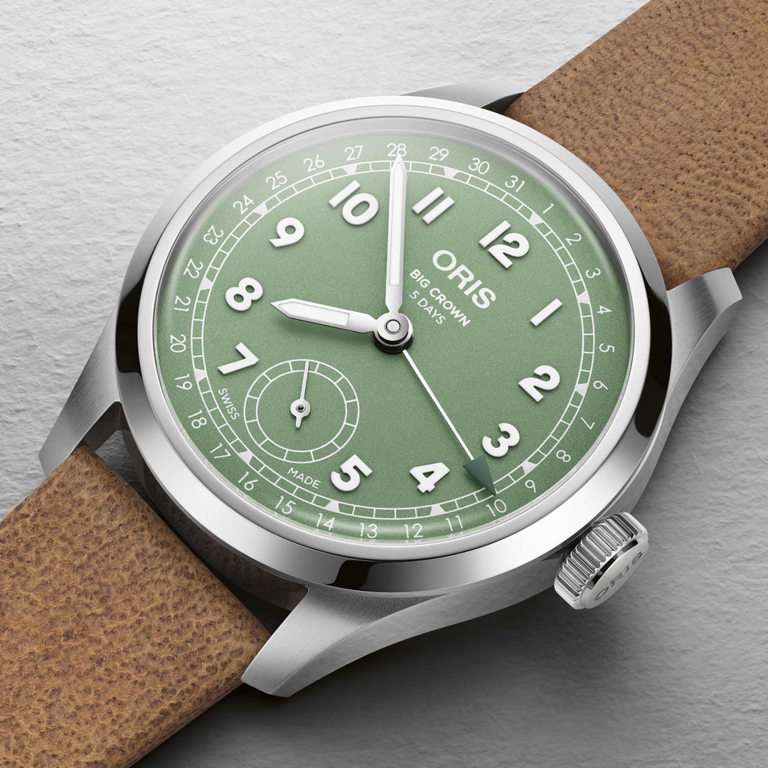 - Mechanisches Automatikuhrwerk Oris Kaliber 754 mit rund 38 Stunden Gangreserve für präzise Leistung.