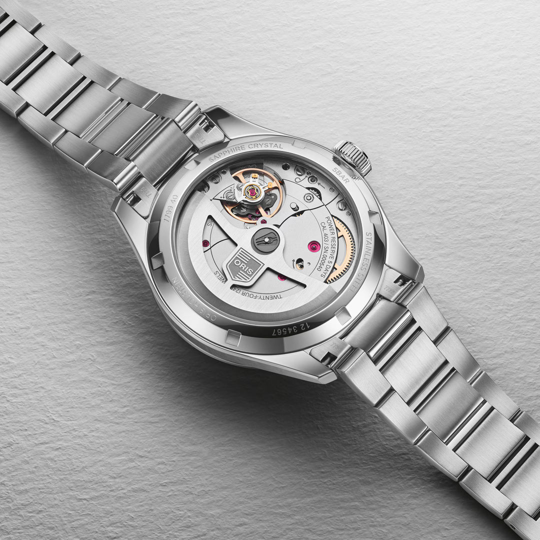 - Langlebigkeit: Automatikwerk Oris 733, 41 Stunden Gangreserve, hochwertiges Saphirglas schützt über Jahre hinweg.