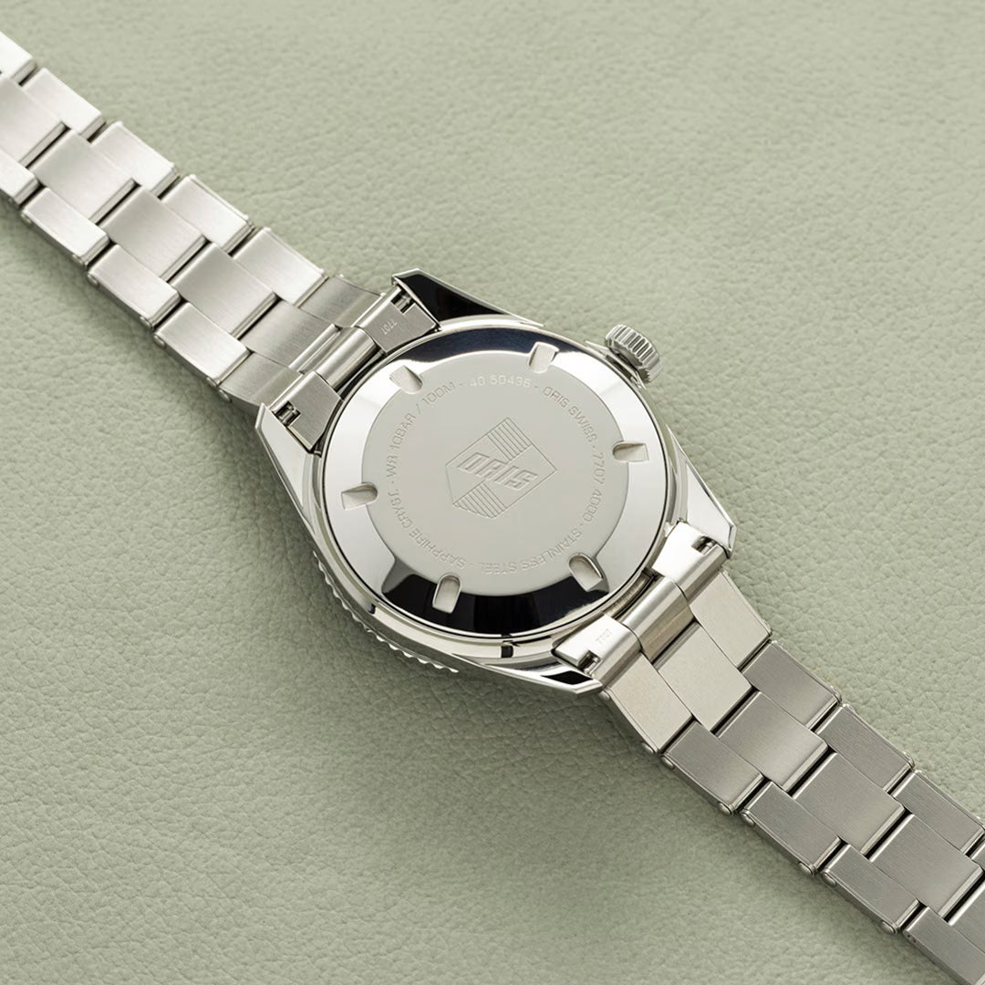 Erleben Sie eine Uhr, die Sie vom Meeting über den Städtetrip bis zum Strandurlaub begleitet. Die 40-mm-Grösse passt zu Hemd oder T-Shirt, während das gewölbte Saphirglas Schutz und Stil zugleich bietet. Wasserdicht bis 100 Meter, mit verschraubter Krone und leuchtenden Indizes – diese Oris trotzt Wind, Wetter und sogar dem Meer.Was die 733770740570782018 so besonders macht