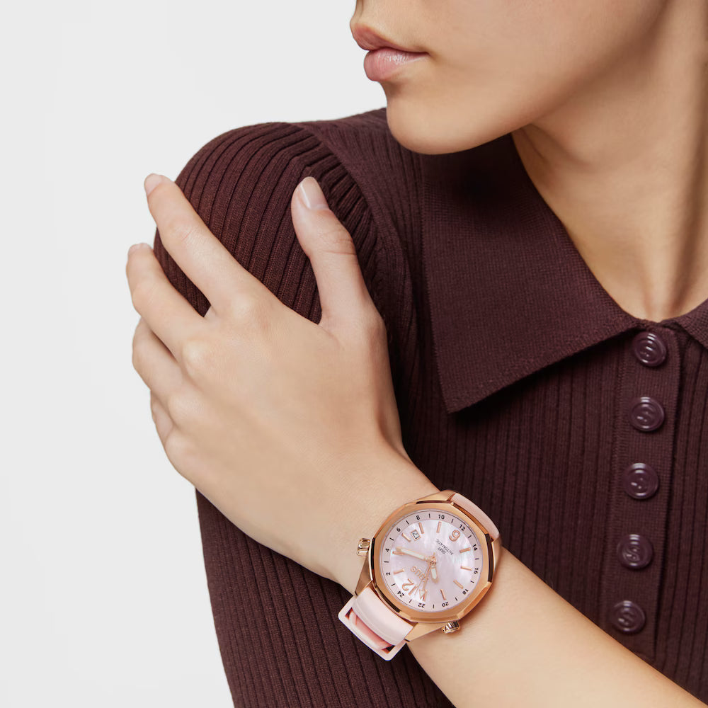 Ob beim Business-Meeting, in der Freizeit oder bei besonderen Events Diese Uhr passt sich Ihrem Leben an. Das automatische Uhrwerk vereint Zuverlässigkeit mit Komfort – kein Batteriewechsel nötig. Mit IP-Rosé beschichtetem Edelstahl und einem rosafarbenen Silikonband schafft sie harmonische Akzente, die Ihre Weiblichkeit unterstreichen, ohne zu überladen.