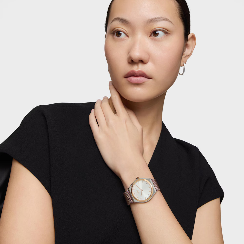 Die Mod. 3000139900 zeichnet sich durch ihr 36-mm-Gehäuse, IP-Rose-Mesh-Band und reduzierte Gestaltung ohne Steinbesatz aus. Andere Modelle bieten z. B. Steine, andere Gehäusegrössen oder Bicolor.