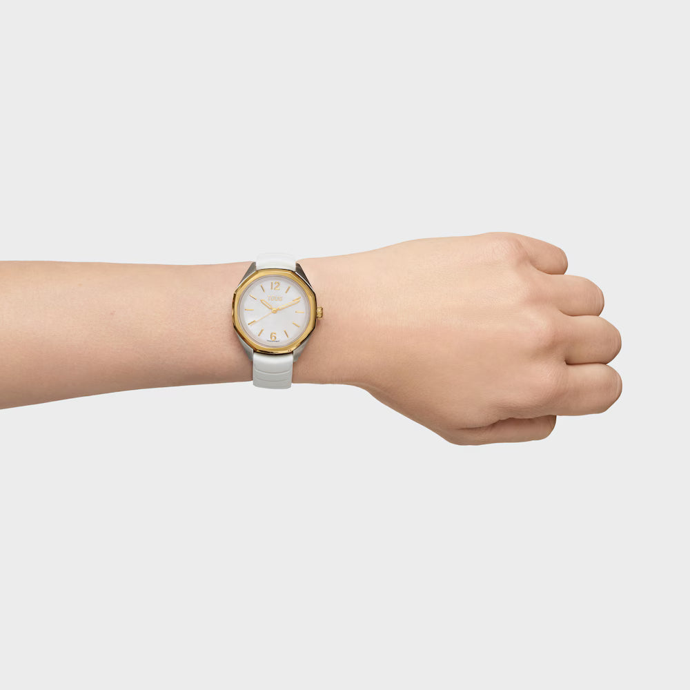 Im Vergleich etwa zu Modellen mit Metallband ist diese Version leichter, sportlicher – das weisse Kautschukarmband sorgt für Flexibilität und Komfort. Andere Varianten setzen mehr auf Schmucksteine oder Farbvarianten.