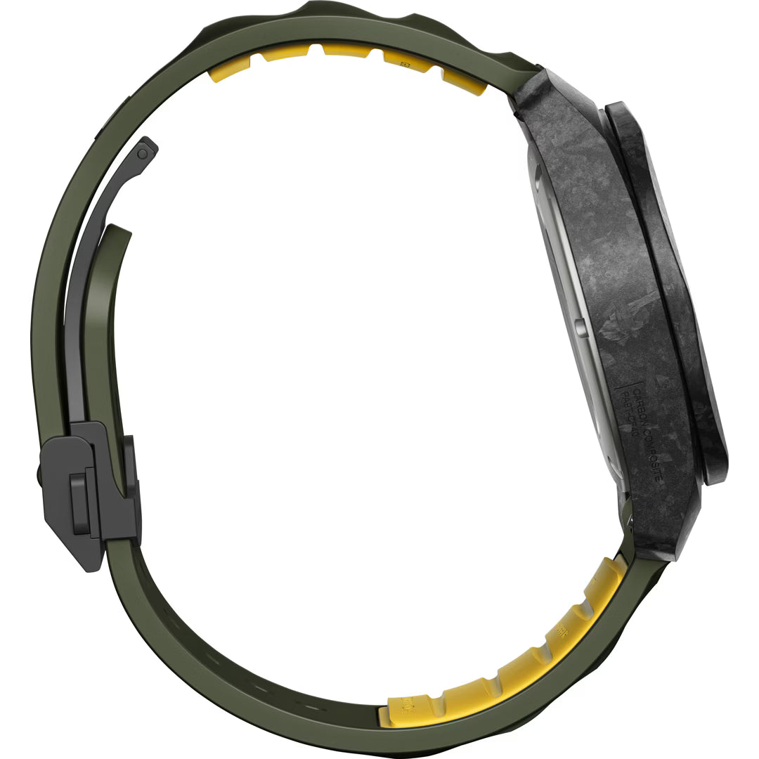 - Hochwertiges Materialdesign Gehäuse und Lünette aus Carbon-Komposit für maximale Leichtigkeit und Stärke.